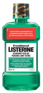 Listerine miętowa przeciwpróchnicowa płukanka stosowana przy każdym zabiegu, dla dzieci płukanka truskawkowa